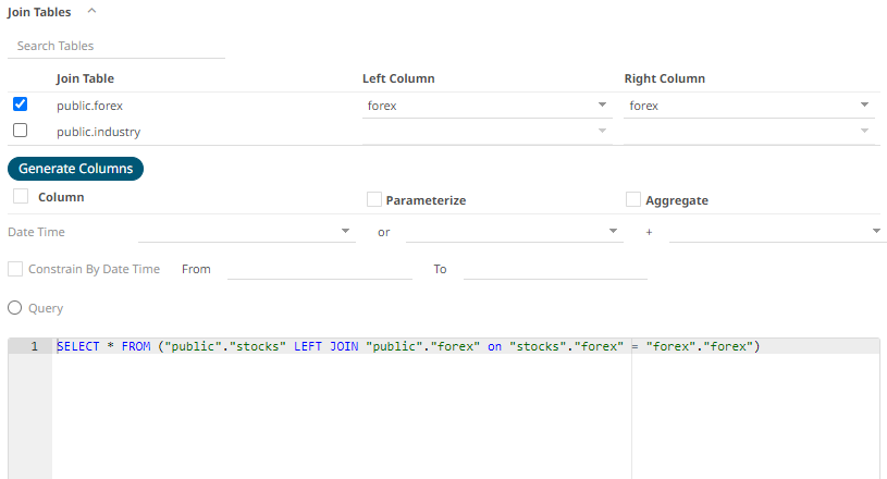 Also, expanding the Join Tables displays the list of tables that you can join.