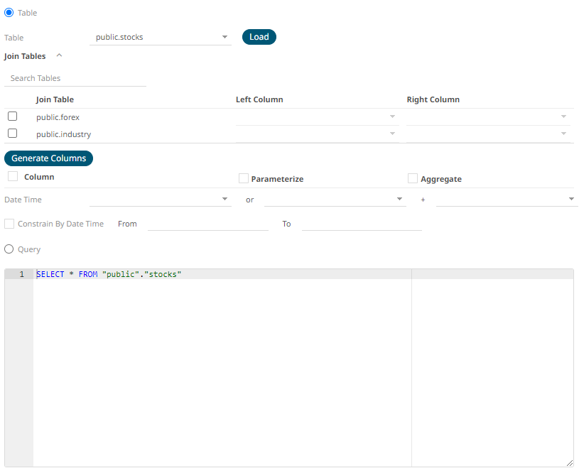 14. Click the Query radio button to enable the text box and modify the SQL-like query language.
