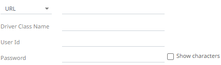 Enter the URL specific to the database’s JDBC driver, the Driver Class Name specific to the driver, and the User Id and Password.