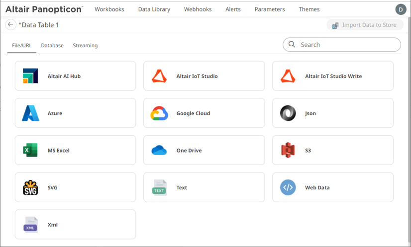 You can add data tables that can be joined or imported to data stores in the Data Library page. These data tables will also be available in the Add and Edit Data Table Wizards that are available in a workbook.