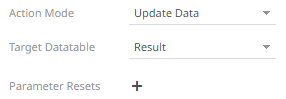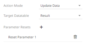 You can opt to specify one or several existing parameters that will get a new value when the Update Data action is executed. You can do so by clicking on the Parameter Resets section.