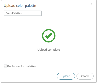 A notification displays once the color palettes file is uploaded.