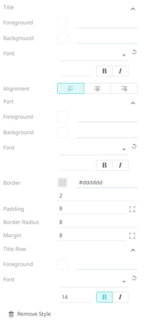 5. To define the default styles of the action part title, click Action Part Title on the Default Styles pane. The Action Part Title Settings are displayed.