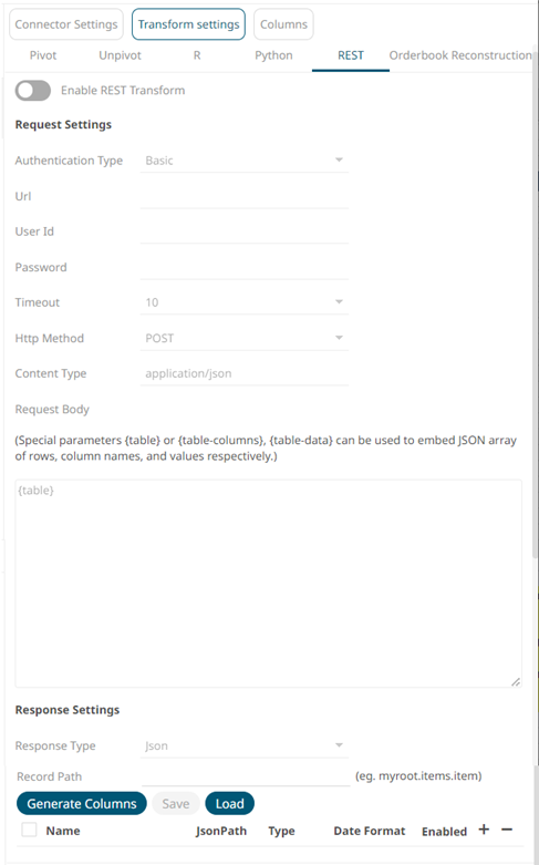 The Transform Settings pane changes to display the REST Transform Settings.