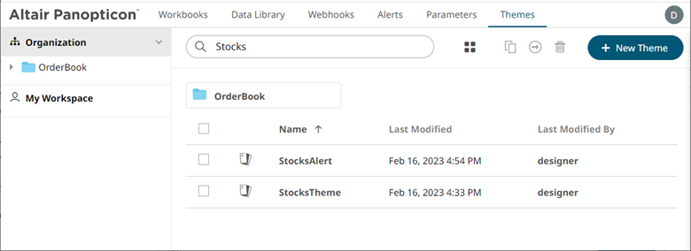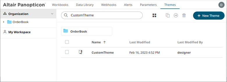 You can also enter one or more characters into the Search Theme box then click Enter. The suggested list of themes that matched the entries will be displayed.