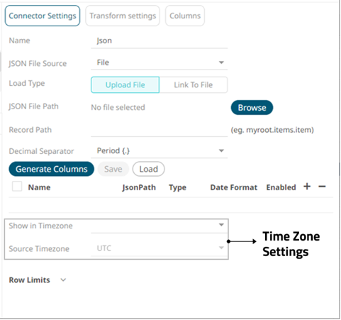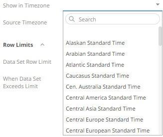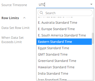 2. This enables the Source Timezone drop-down list. Select a new one if the Date/Time values in the data source are not in UTC.