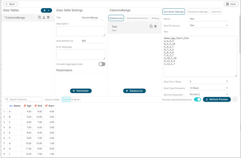Setting the Min and Max Range for Numeric Columns