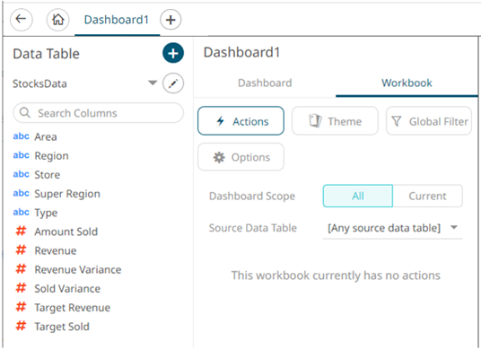 1. On the Dashboard and Workbook Settings pane, click the Workbook tab.
