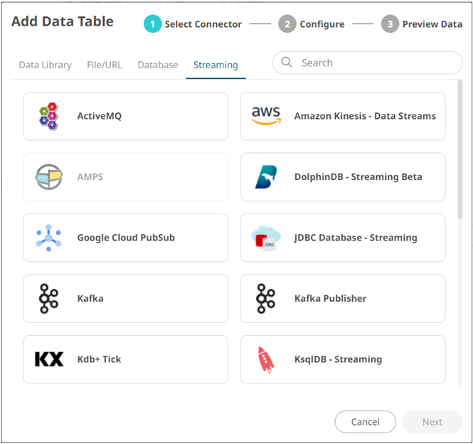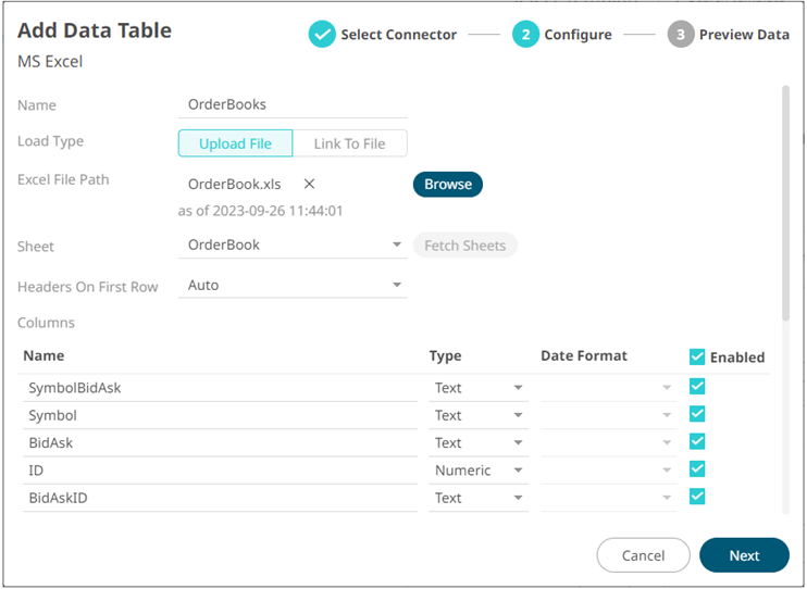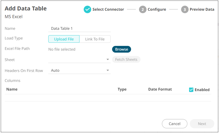 The number of steps in the Add Data Table Wizard will be based on whether you selected a data table from the Data Library or a connector to configure.
