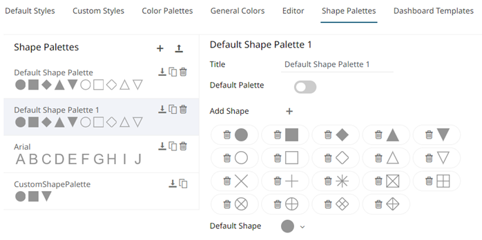 icon of a shape palette. A copy of the shape palette is added in the list (e.g., Default Shape Palette 1).