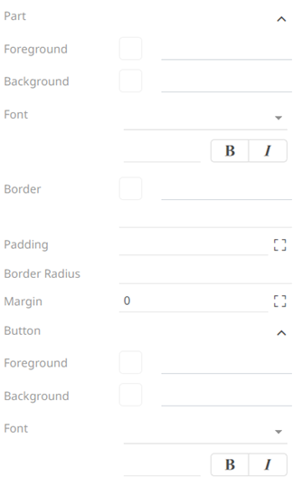 - To define the default styles of the parts, click Part on the Default Styles pane. The Part Settings are displayed.