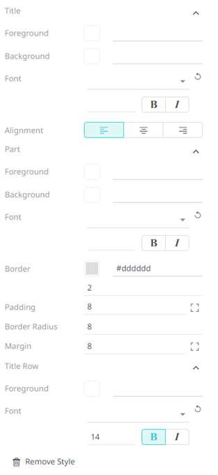 For the part title, Bold is selected by default. - Specify the Border Size of the visualizations.