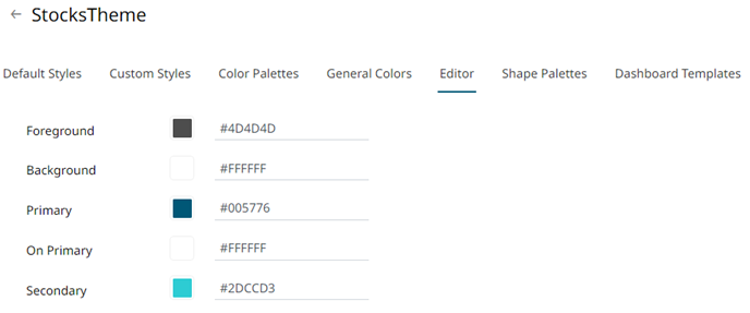 - To set the Foreground, Background, Primary, On Primary, and Secondary colors for the editor style of the Dark theme, click the Editor tab.