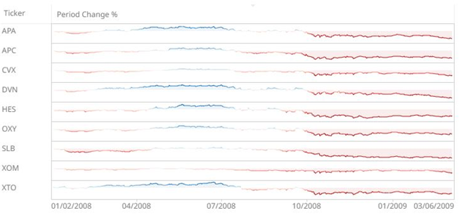 They work especially well when comparing ten or fewer data sets (our Horizon Graph is a good solution for displaying time series data with ten or more data sets).