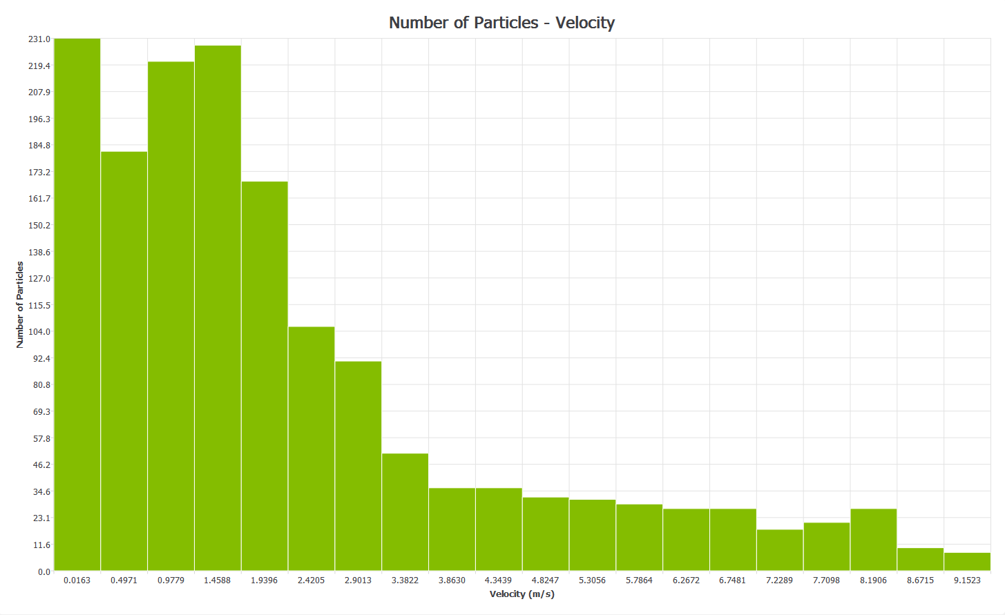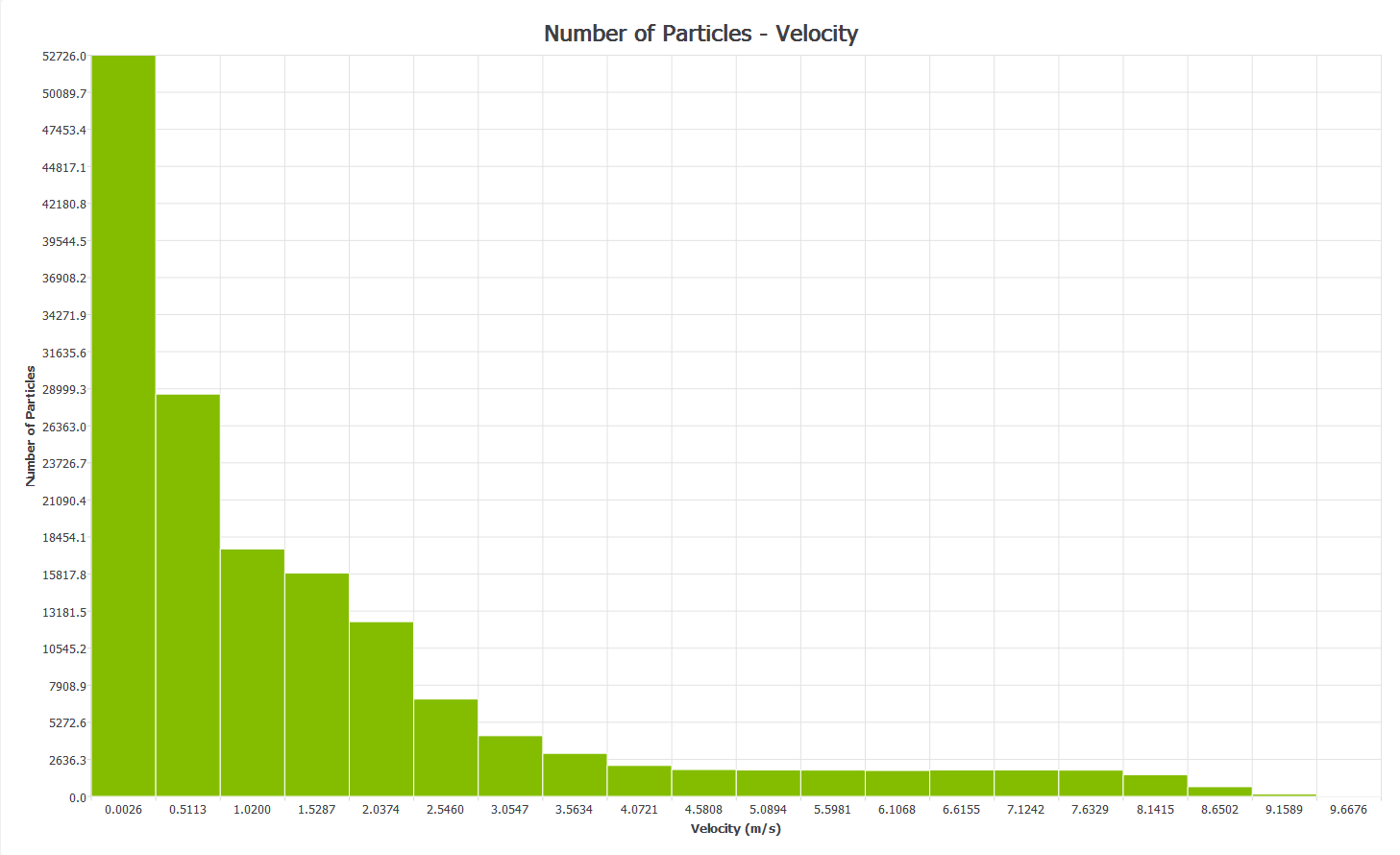 By default, Current Time Step is selected. To modify the Current Time step, use the Current Time control in the Viewer control pane at the right of the screen. For example, the following histograms show the distribution of particles traveling in particular velocity ranges - one one Time step, so each particle is only counted once, and the second for a range of 100 time steps.