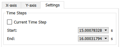 Unselect Current Time Step to set a different start and end time. Grayed-out time steps indicate partial saves and may not contain all the data you want to plot.