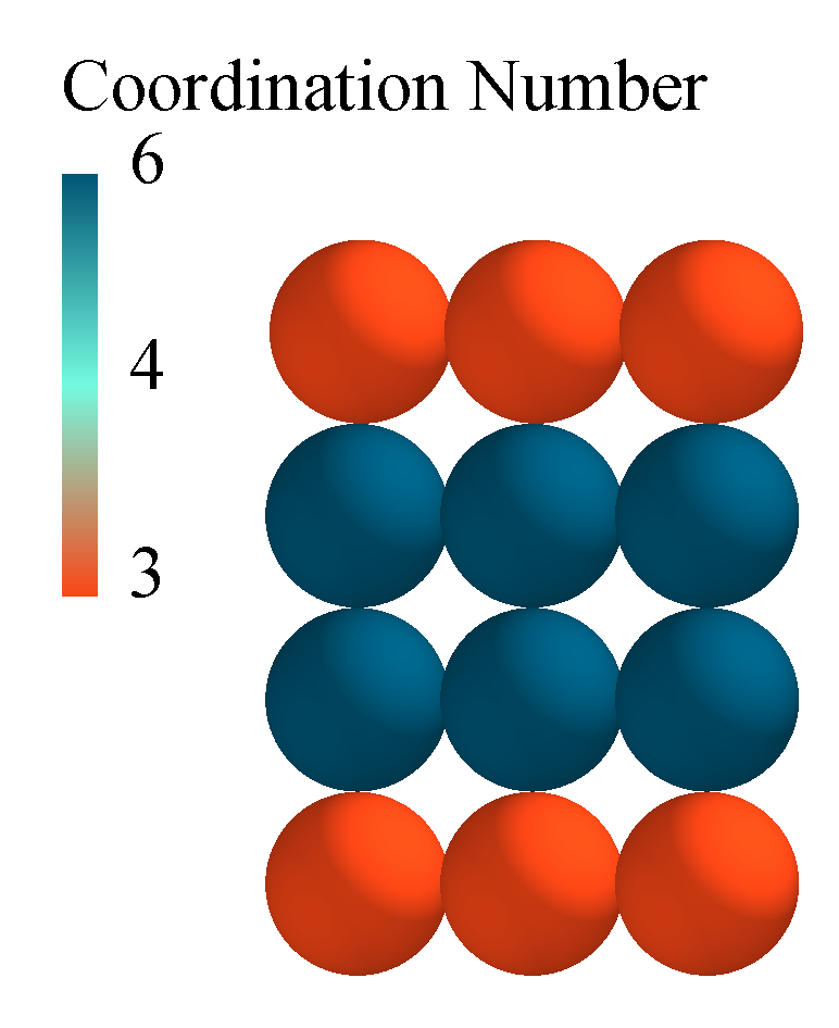 | Coordination Number | The coordination number of a particle is the number of contacts that a particle has with the spheres of another particle at any given point in time.Below is an image of a 3-sphere particle shape. Four particles are placed on top of each other. The base and top particles have a coordination number of 3 as each particle is in contact with 3-spheres of the middle particles. The middle two particles have a coordination number of 6 as they are in contact with 3 spheres of the particle above and 3 spheres of the particle as shown.![]() The particle-geometry contacts are not counted in the coordination number. |