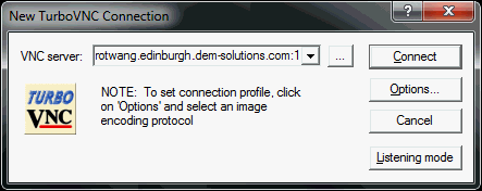 Typically, EDEM Engineers use Tight VNC for the server on the processing machine and Turbo VNC for user machine. The advantage of using Turbo VNC is that the advanced graphics card options can be used (de-select ‘legacy particle display' from EDEM Tools > Options > particle display).