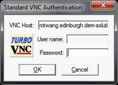 - From your own machine start the VNC client and enter the FQDN of the machine followed by a colon and the number you took note of previously.