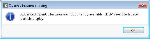 If Legacy particle display is selected then EDEM is not using the processing machines graphics card effectively to display the particles, when using Remote Desktop the following message will be displayed if this option is not disabled: