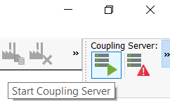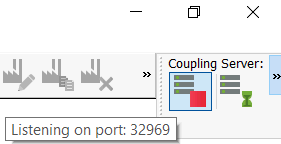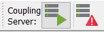 The left icon starts or stops the coupling server. The right icon provides the current status of the coupling - Disabled, Awaiting incoming Connection, or Connected.