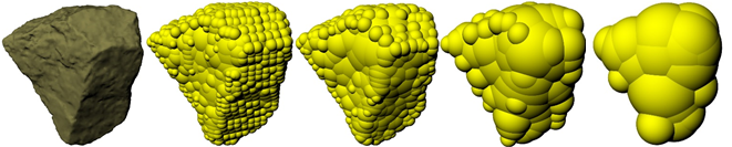 After all spheres are generated, optimization is performed to remove unnecessary spheres. When a smoothing value is greater than 1, the fidelity of the particle will be reduced and the total number of spheres will decrease.