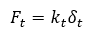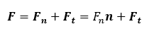 The contact force F between a pair of contacting elements is decomposed into both normal and tangential components, Fn and Ft, respectively, as: