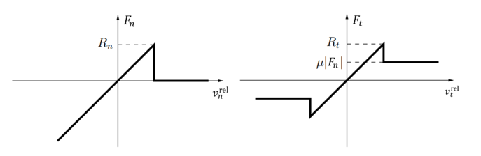 - The bond is under tension and the magnitude of the normal component of the contact force exceeds the defined normal strength.