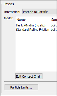 icon to view a list of all possible interactions for Particle to Particle or Particle to Geometry contacts.