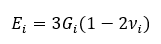 where Gi is the Shear modulus and νi the Poisson’s ratio. A normal spring stiffness term is calculated for the bond associated with each element i as: