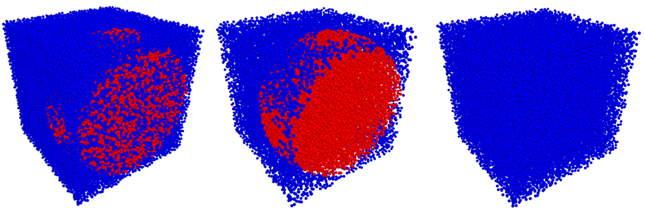 From the left to right, you can see both particle types, New Particle 1 only, New Particle 2 only. Blue indicates a Custom Residence Time of zero and red indicates a non-zero value.