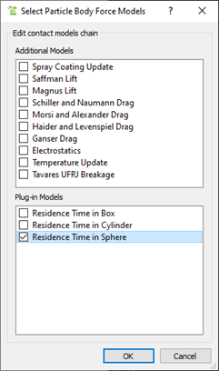 - In the Select Particle Body Force Models dialog box, select the appropriate model and click OK.