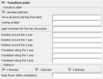 - Together with Move all points starting from label specify the label range of points that must be translated, rotated or scaled. See the general discussion of label ranges. If the second field is left empty, only structures with the label set in the first field are considered.