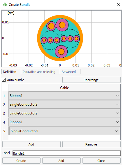 Define a cable bundle that may consist of multiple defined cables (for example, single conductors, coaxial cables,