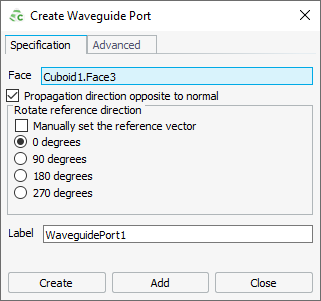 Apply a microstrip port to represent a feed line in a microstrip structure. A microstrip port is specified on an edge