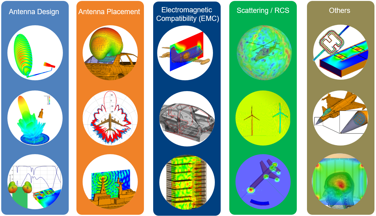 - Analysis of wide-ranging antenna. Examples include wireless communication devices and systems (FM, GPS, 3G, TV, LTE and MIMO), reflector antenna, antennas for radars, antennas with radomes and many more.