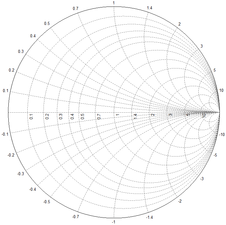 A Smith chart is a graphical representation of impedance, admittance, phase, wavelength and reflection coefficient. The Smith chart consists of a family of normalized resistance circles and reactance circles. The circles represent the value of the input impedance of some system (network, circuit or load) as measured a certain distance away from the system over a transmission line. 7 The Smith chart provides a transformation between reflection coefficient and impedance over a transmission line. It represents wave behaviour on a transmission line.8 The advantage of the Smith chart is that you can represent all complex values from positive to zero and negative infinity for the real and imaginary parts.