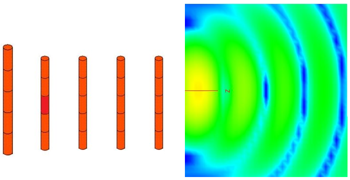 Figure 6. Yagi-Uda antenna near fields visualised in POSTFEKO.