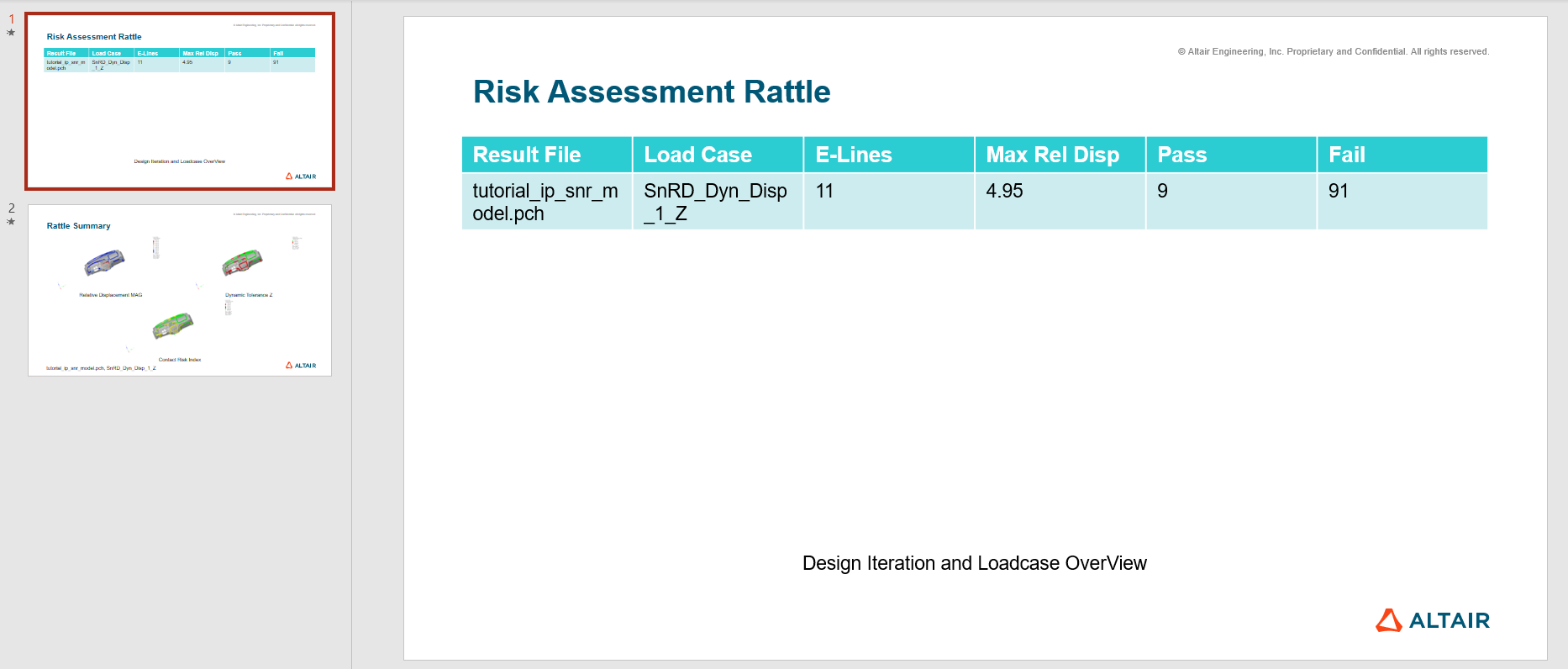 The objective of this tutorial is to create E-Lines to evaluate squeak and rattle, define a SineSweep loadcase, and evaluate risks.