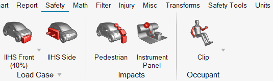 Use the Safety ribbon to access crash and safety post-processing tools.