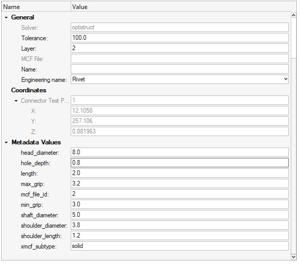 - 0D: Spotweld, bolt, screw, gumdrop, clinch, rivet (blind, self-piercing, solid, swop), robscan, contact_list, threaded connection, heat stake, clip, nail