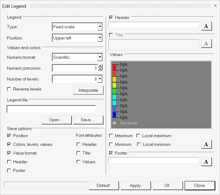 - Displays more or less contour bands along with their respective ranges. The minimum number of bands you can display in a legend is 2; the maximum is 32.
