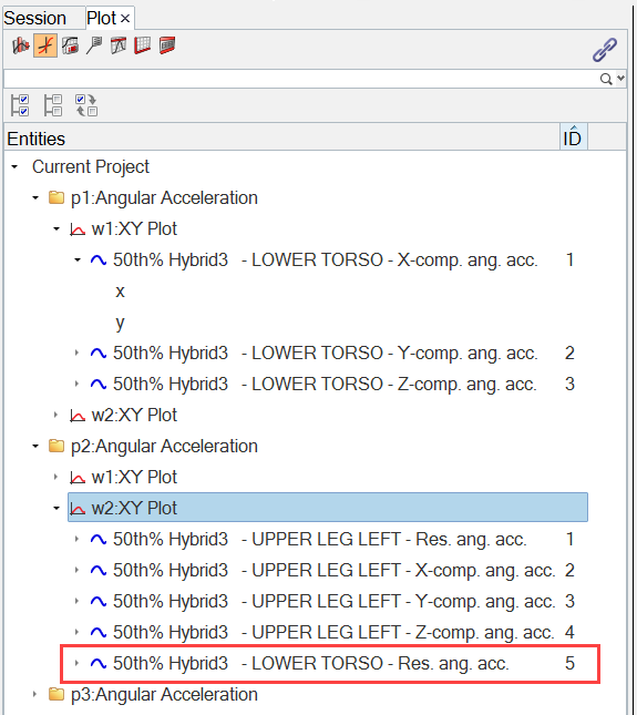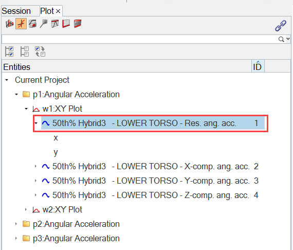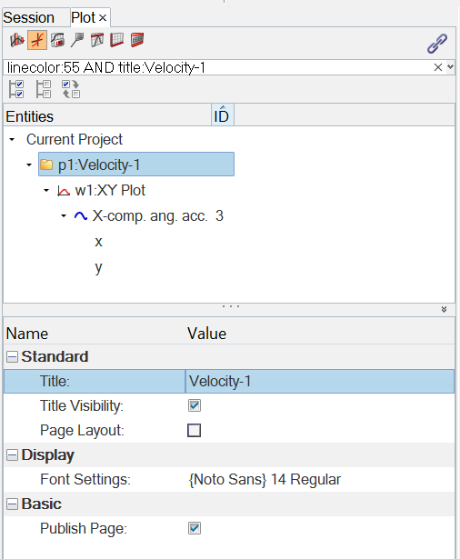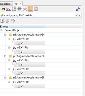 The example below illustrates searching for all axes with Acceleration in the label on an xy plot.