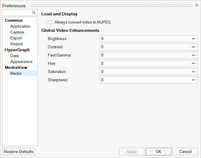 - The global settings in Preferences are stored in hwsettings.xml, whereas local Media window settings are stored in the session/template files. As a result, when you start a new session, the values defined in Preferences and saved to hwsettings.xml are displayed. Restore your session or template file to start where you left off with settings applied to every video.