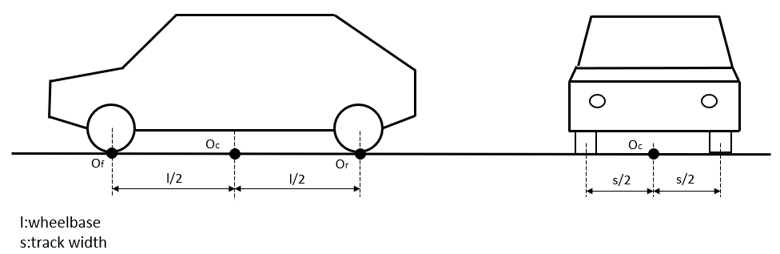 The coordinate system in which the above defined force and torque components are to be applied is located in Oc and fixed to the car body.