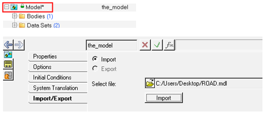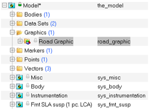 - .mdl and .h3d: represents the Graphic System and the Road Graphics to be visualized in MotionView and post-processed in HyperView.