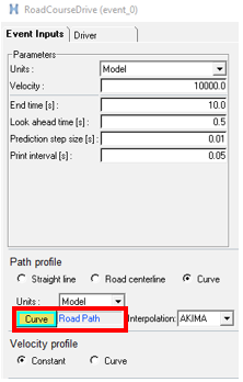 Figure 6. - In the RoadCourseDrive Event, select the created curve under the Path