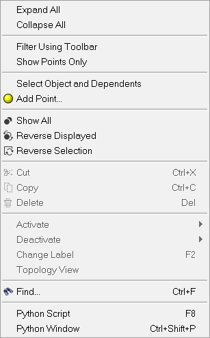 | Define Points Relative to Marker... | Right-click on points in the browser and use the guide bar to select a marker that will be used to parameterize the location of the currently selected points. | ||
