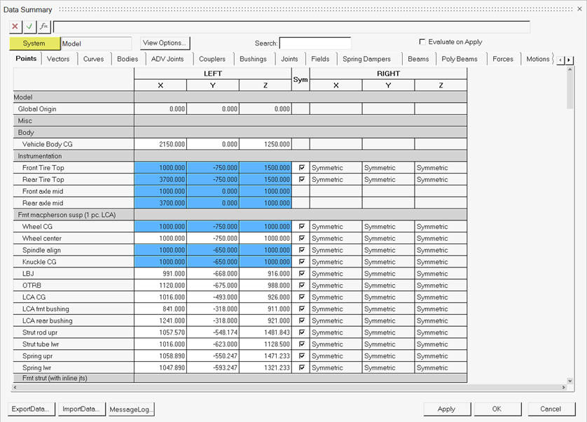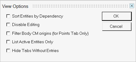 | Filter Body CM origins (for Points Tab Only) | Filter Points that are used as Body CG. |