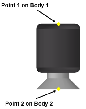 Typically, air springs act between the chassis and an axle. Point 1 on Body 1 defines the top of the air spring, while Point 2 on Body 2 defines the bottom of the air spring.